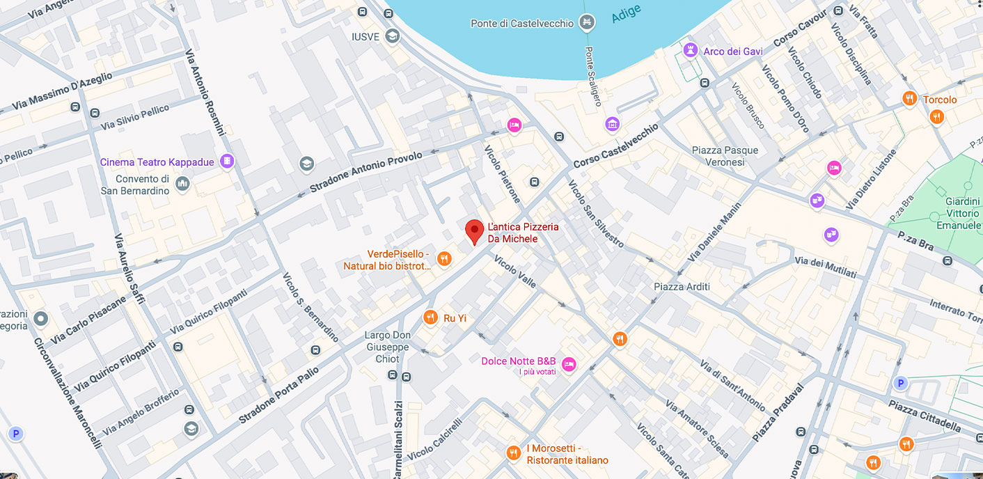 Nata dal desiderio di portare l’autentica pizza napoletana fuori da Napoli, l’Antica Pizzeria da Michele di Verona è la sede storico-culinaria nel cuore della “città dell’amore”. Qui puoi gustare la celebre pizza “a ruota di carro”: grande, sottile al centro, dal cornicione delicato e saporito, realizzata seguendo la ricetta e la passione che da oltre 150 anni contraddistinguono Da Michele.